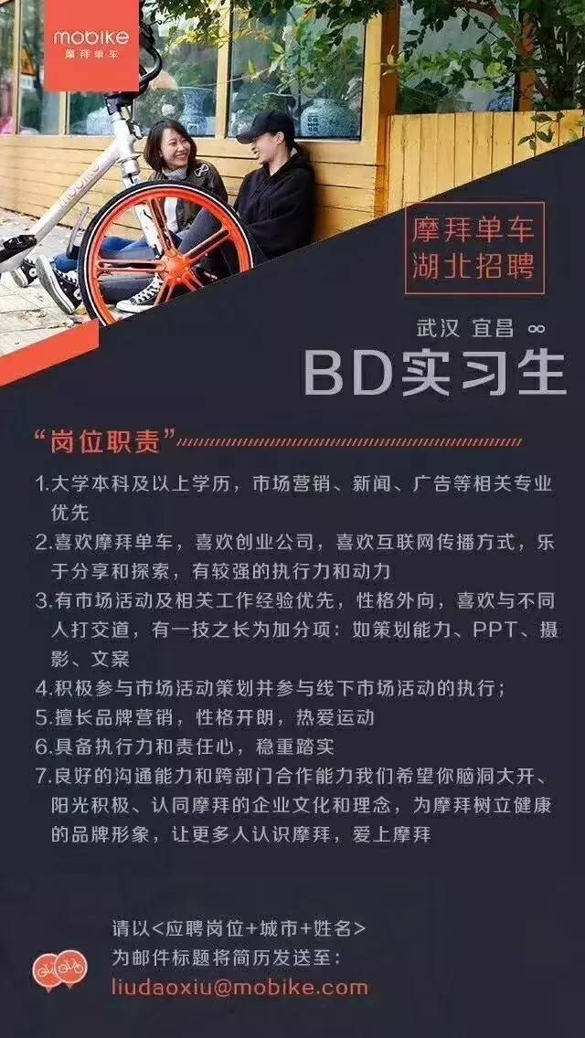 轉(zhuǎn)載請注明來自馬鞍山市深藍光電有限責任公司,本文標題:《洛陽摩拜單車最新職位招聘啟事》